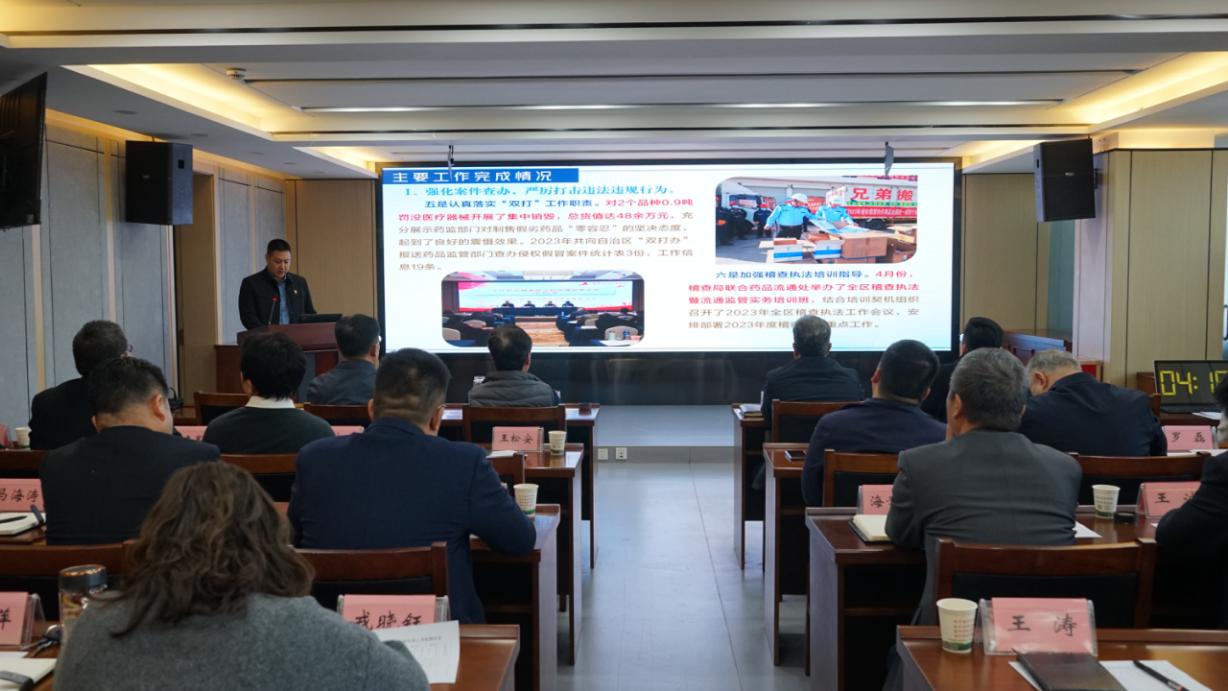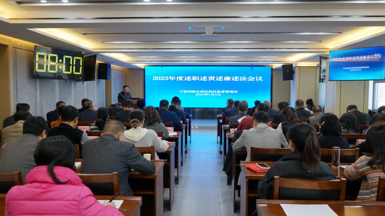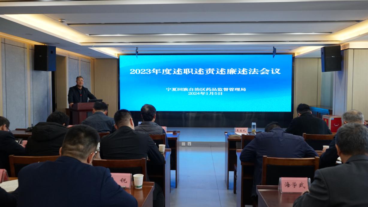 2024年1月5日,av视频 召开2023年度处级领导干部述职述责述廉述法会议,局党组班子成员、药品稽查专员、局机关全体干部、直属事业单位班子成员参加会议。