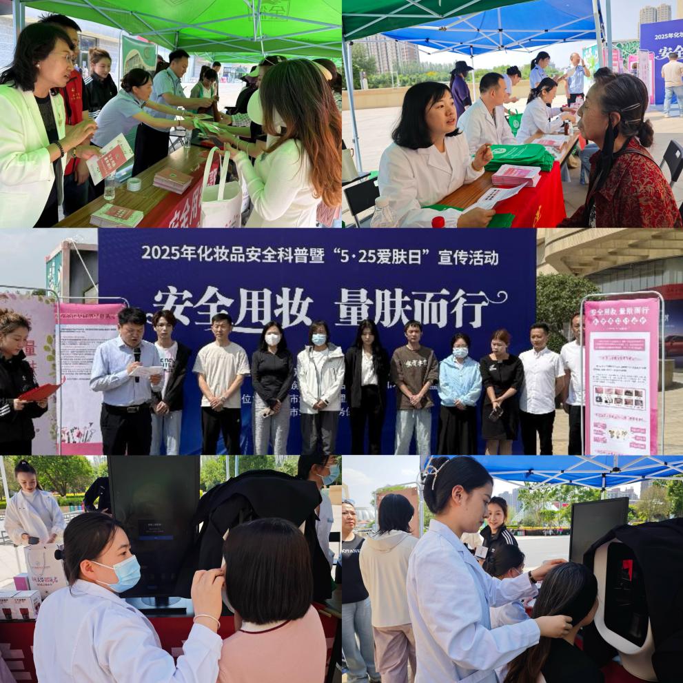 为进一步加强化妆品安全监管法规宣传,倡导科学理性的用妆理念,切实保障消费者用妆安全,5月23日下午,av视频 组织宁夏回族自治区药品审评查验和不良反应监测中心(以下简称宁夏中心)、银川市市场监督管理局、银川市市场监管服务保障中心在银川市金凤区阅彩城喷泉广场共同举办2025年“5.25爱肤日”主题宣传活动。本次活动以“安全用妆、量肤而行”为主题,采取线上线下相结合的方式,全区五市同步开展,全方位普及化妆品科普知识。