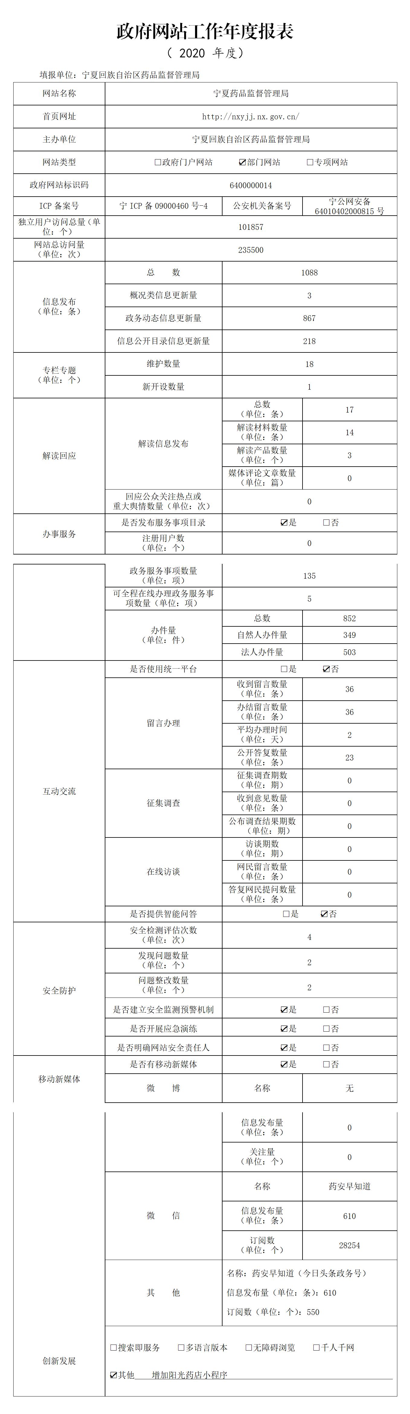 政府网站工作年度报表 ( 2020 年度)