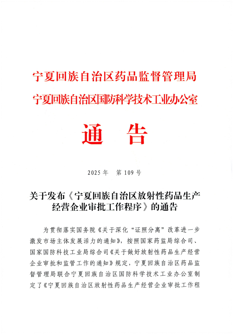 为贯彻落实国务院《关于深化“证照分离”改革进一步激发市场主体发展活力的通知》(国发〔2021〕7号)精神,根据《中华人民共和国药品管理法》《放射性药品管理办法》《药品生产监督管理办法》等法律法规的规定,按照国家药监局综合司、国家国防科技工业局综合司《关于做好放射性药品生产经营企业审批和监管工作的通知》(药监综药管〔2021〕73号)相关要求,现就做好我区放射性药品生产经营企业审批工作有关事项,制定如下程序。